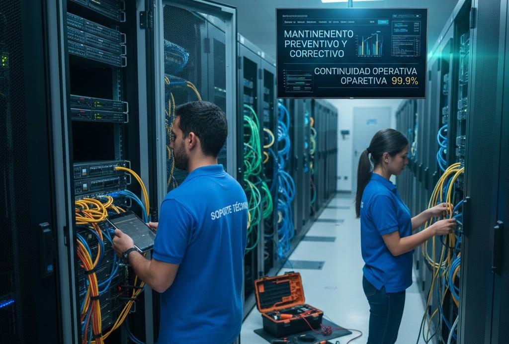 Mantenimiento preventivo y correctivo de redes, servidores y equipos tecnológicos, enfocado en asegurar la continuidad operativa y minimizar fallas.